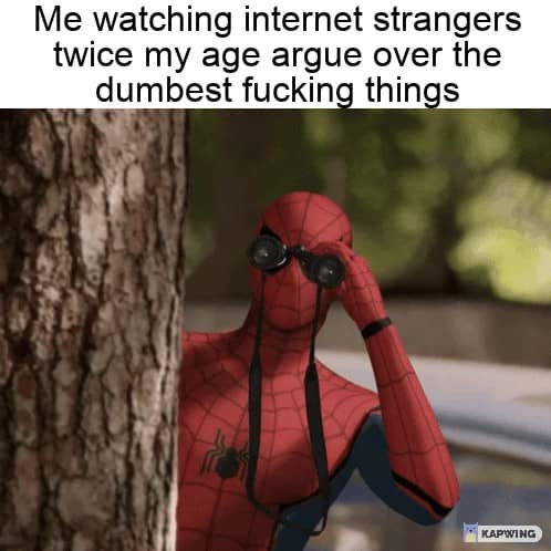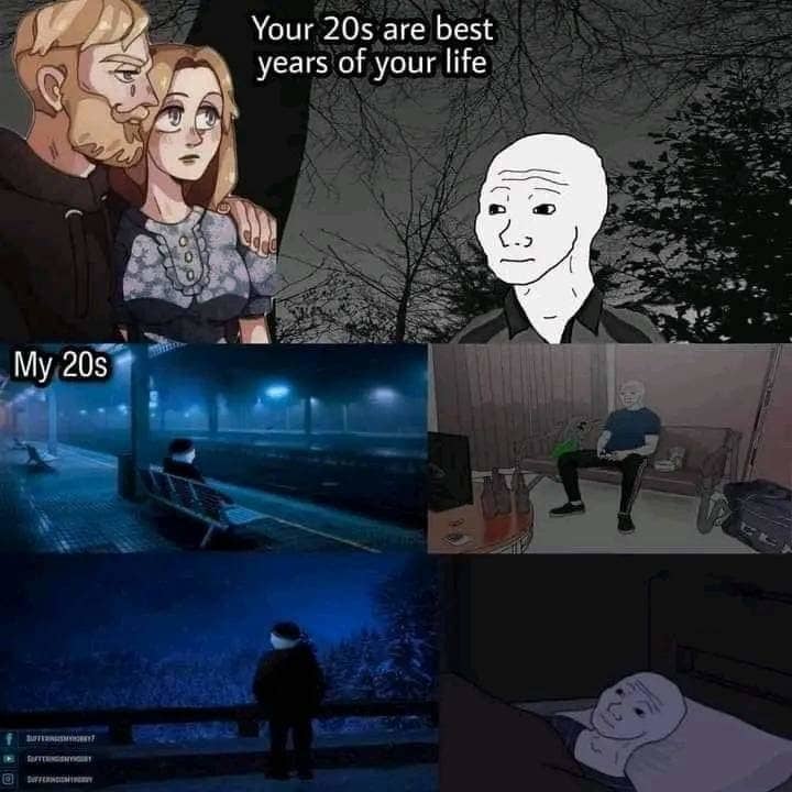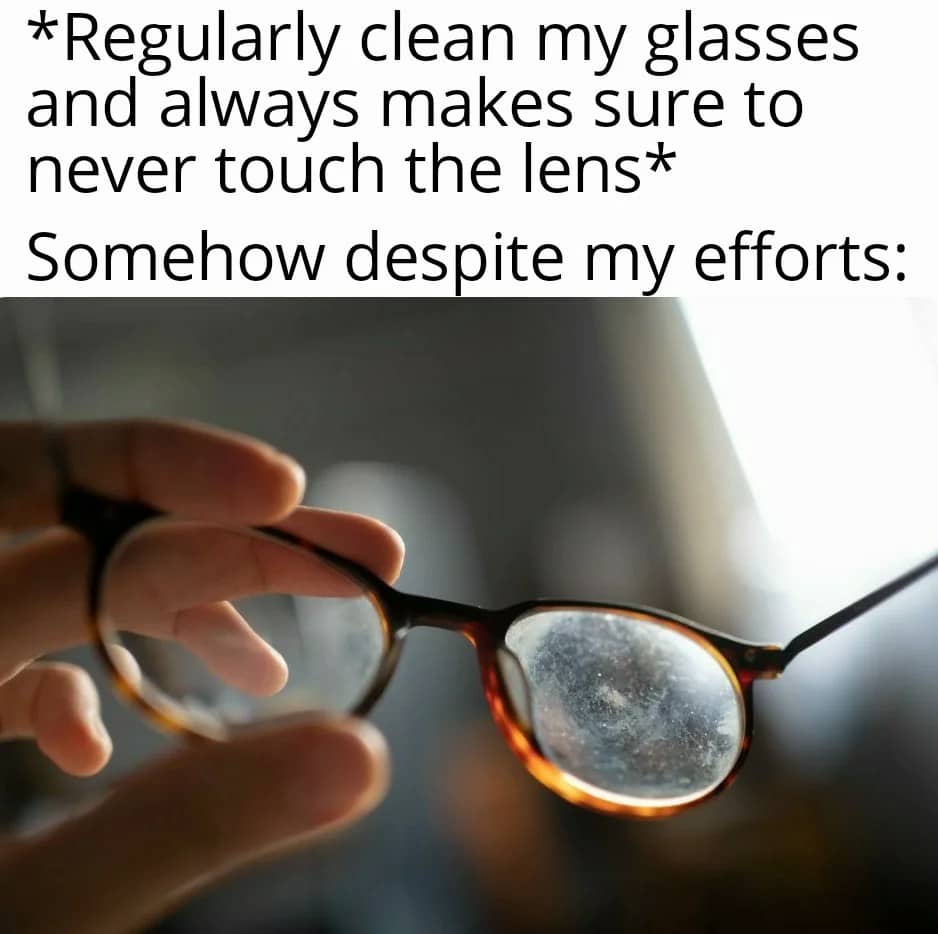 Your 20s are best years of your life / My 20s When someone's ring tone is the same as your morning alarm. The 4 horsemen of contributing nothing to a conversation- / Hmm / Oof / K / Bruh Regularly clean my glasses and always makes sure to never touch the lens / Somehow despite my efforts Name a more iconic duo, i'll wait / Breath / Exhalation Me, when i accidentally clicked on "turn off the dark mode" button at night Me watching internet strangers twice my age argue over the dumbest fucking things