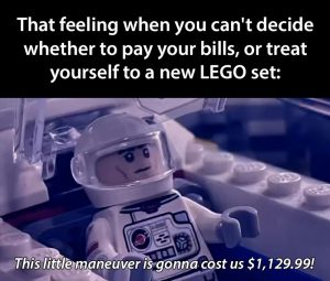 That feeling when deciding between paying bills and buying a new Lego set