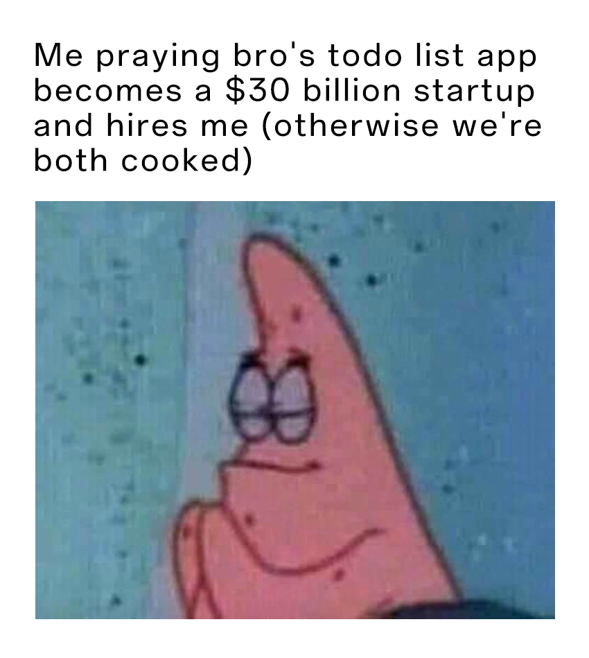 - Tech Startup Humor: A satirical version involves praying for a friend’s basic "To-Do List" app to reach a $30 billion valuation so the creator can be hired to avoid unemployment.