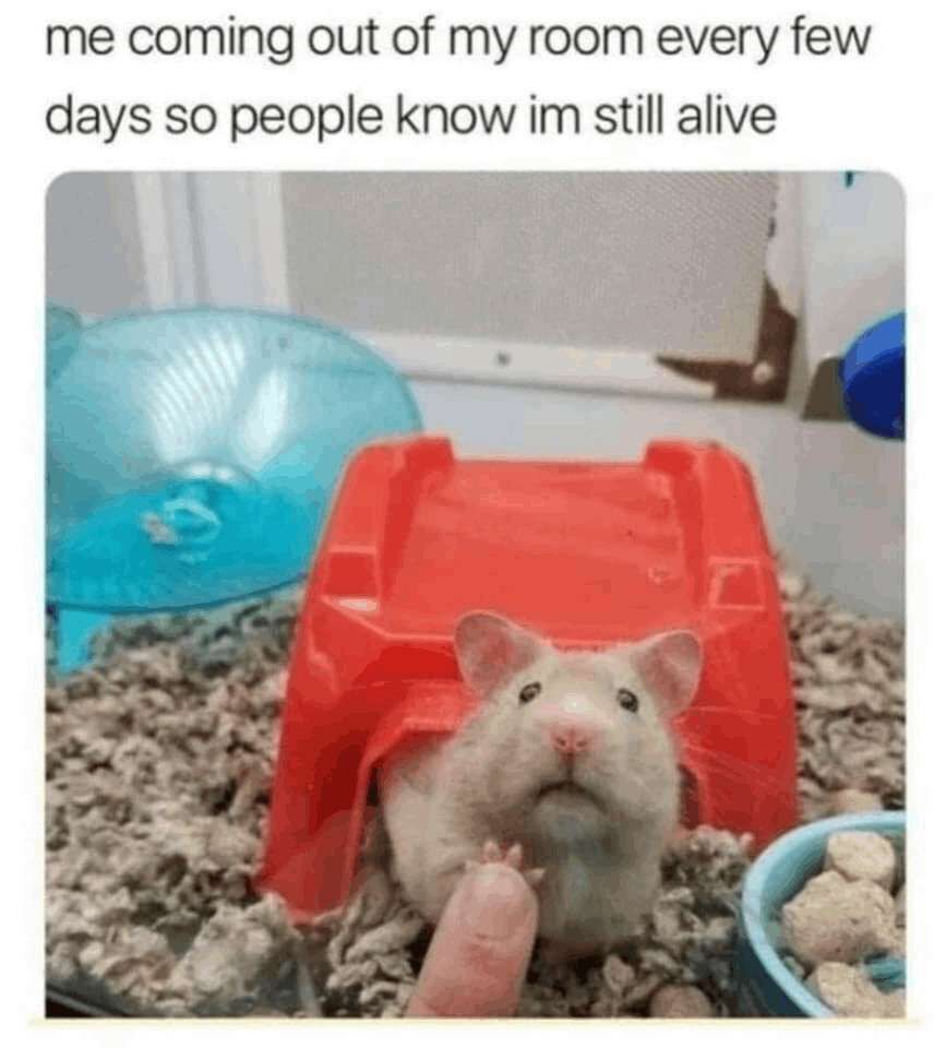 me coming out of my room every few days so people know im still alive
