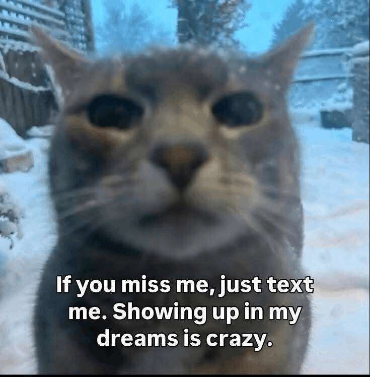 If you miss me, just text me. Showing up in my dreams is crazy.