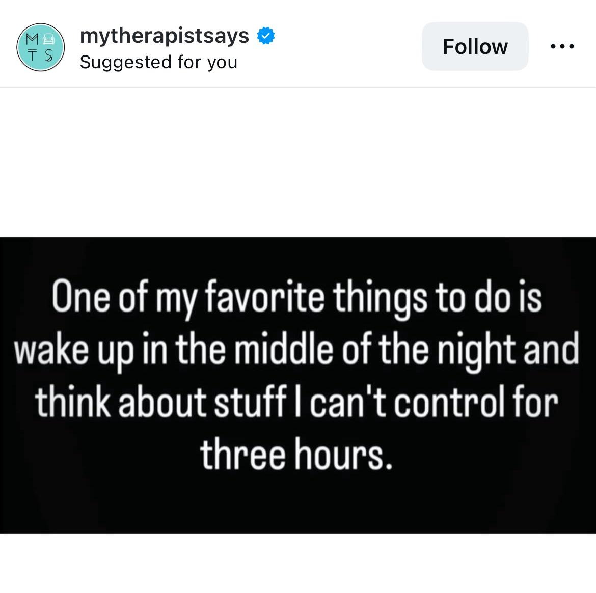 One of my favorite things to do is wake up in the middle of the night and think about stuff I can't control for three hours.