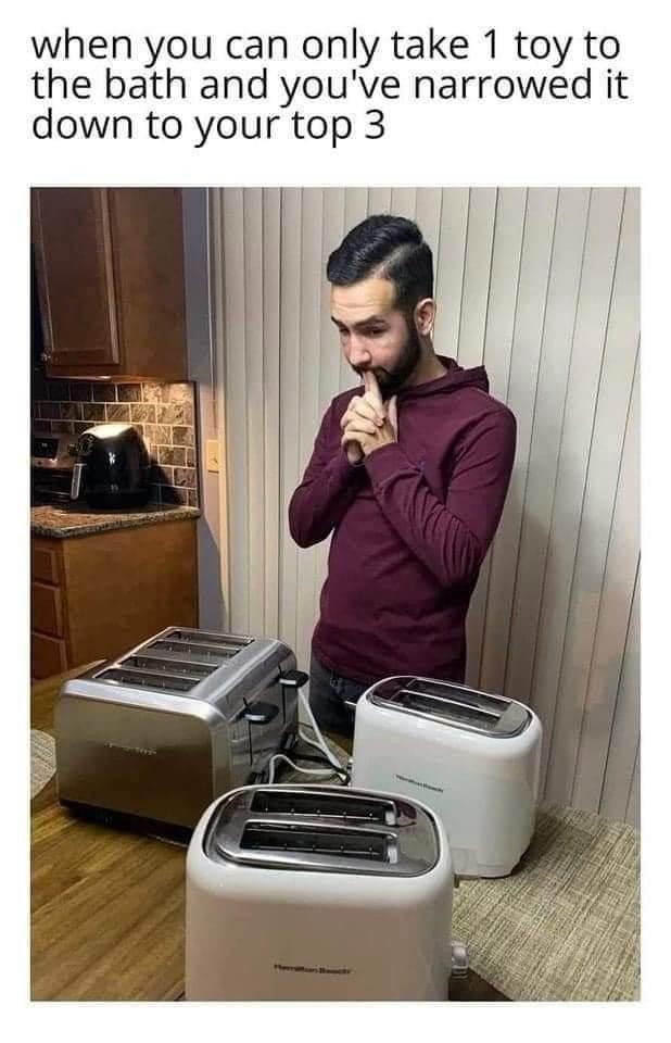 When you can only take 1 toy to the bath and you've narrowed it down to your top 3