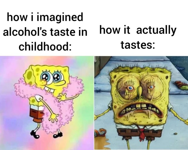 how i imagined alcohol's taste in childhood: / how it actually tastes