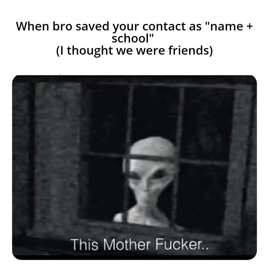When bro saved your contact as "name + school" (I thought we were friends) / This Mother Fucker..
