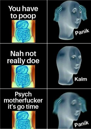 When everyone thinks you’re a chill guy but you’re really a stressed guy who pees his pants.