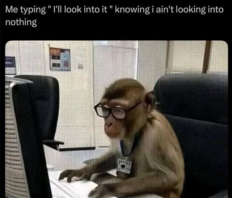 Me typing " i'll look into it " knowing i ain't looking into nothing