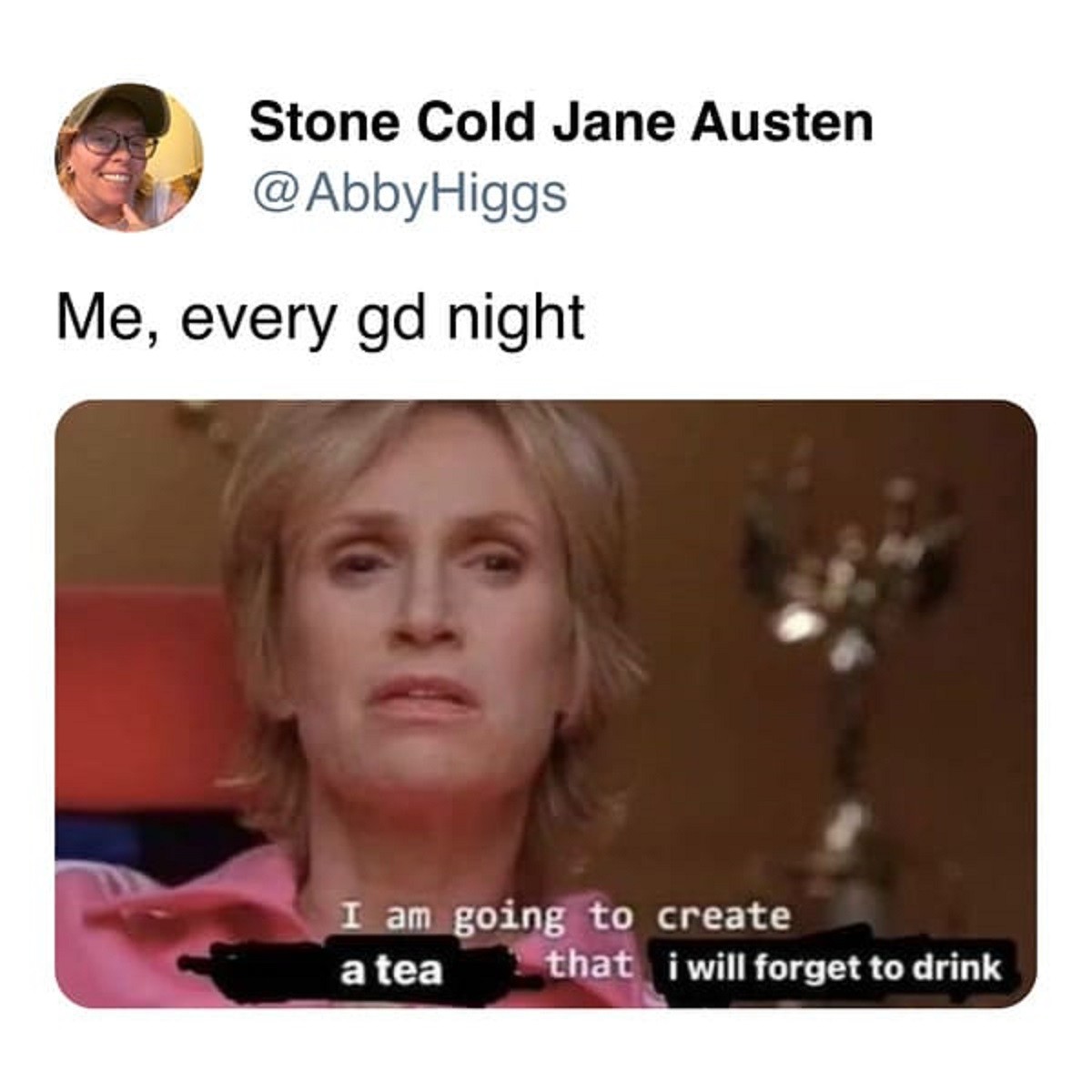 Me, every gd night / I am going to create a tea that i will forget to drink