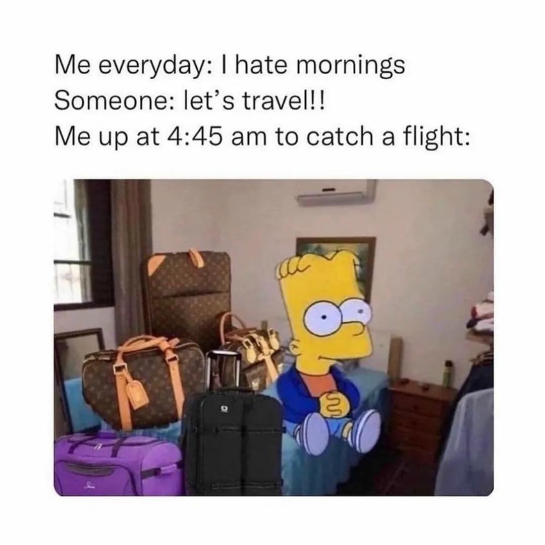 Me everyday: i hate mornings / Someone: let’s travel!! / Me up at 4:45 am to catch a flight