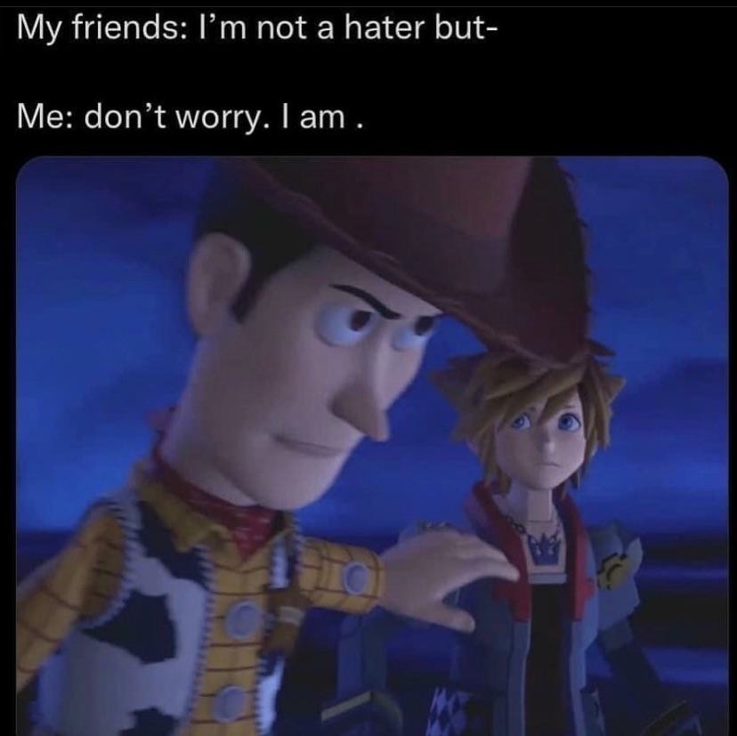 My friends: I’m not a hater but- / Me: don’t worry. I am