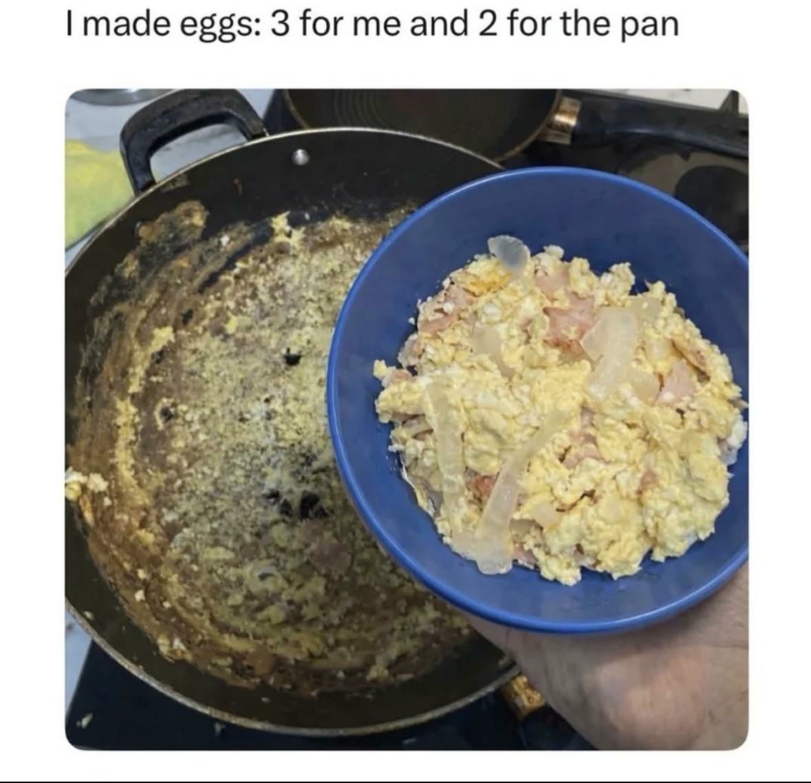 I made eggs: 3 for me and 2 for the pan
