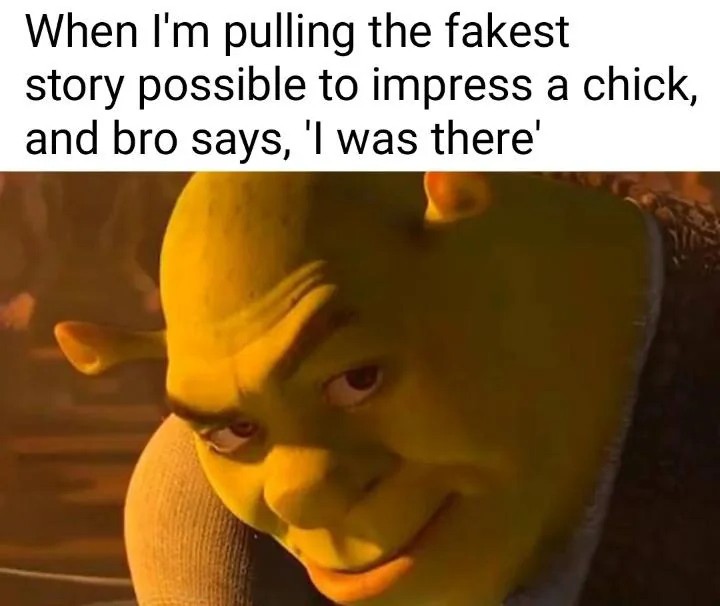 When i'm pulling the fakest story possible to impress a chick, and bro says, 'i was there'