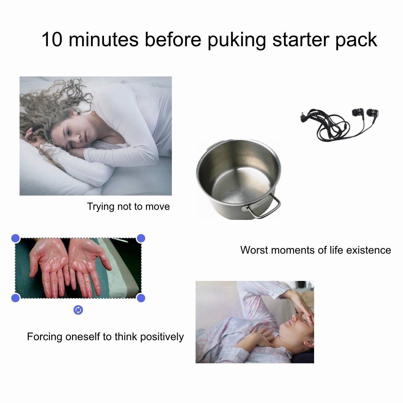 10 minutes before puking starter pack / Trying not to move / Worst moments of life existence / Forcing oneself to think positively