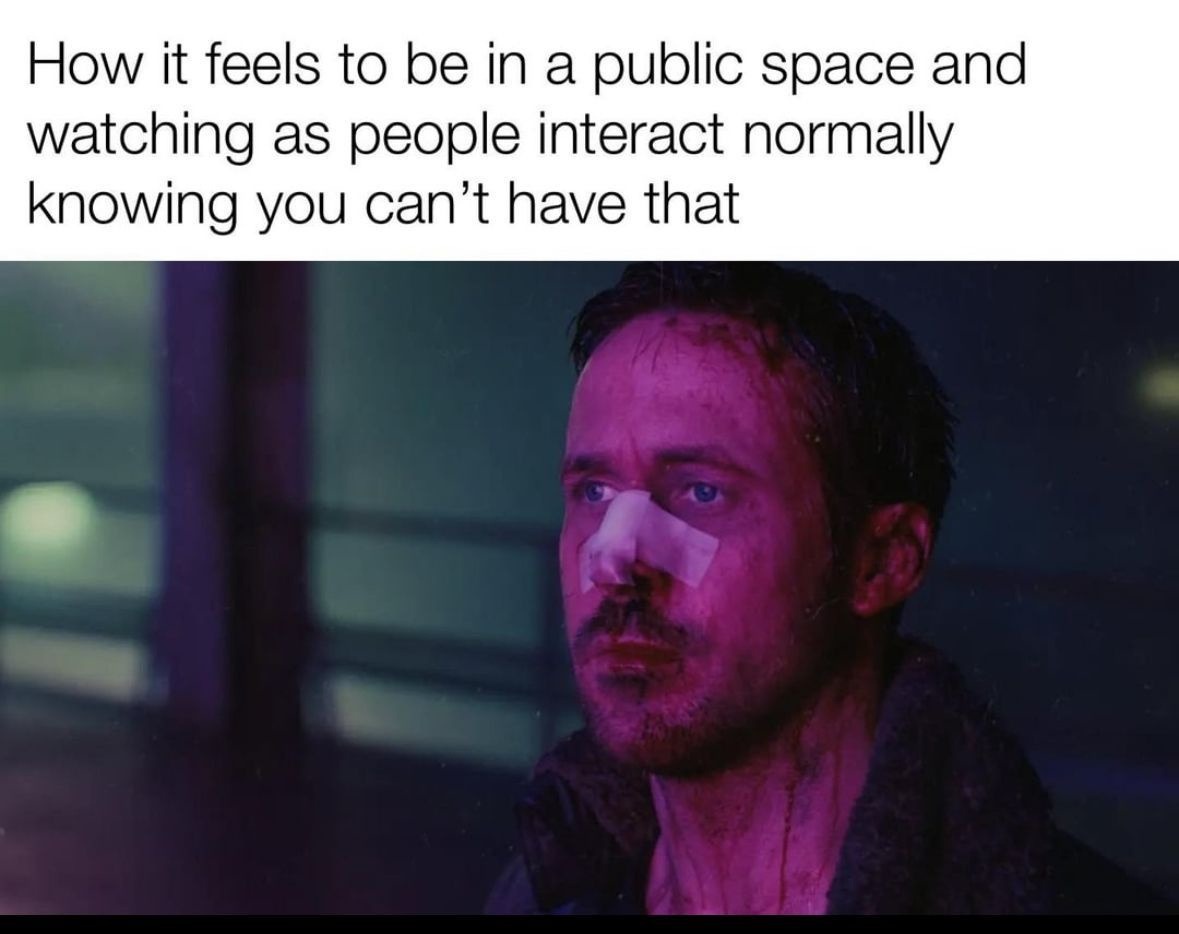 How it feels to be in a public space and watching as people interact normally knowing you can't have that