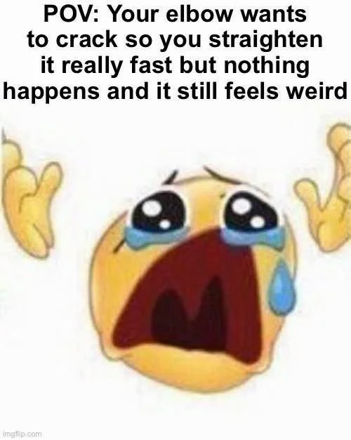 pov: your elbow wants to crack so you straighten it really fast but nothing happens and it still feels weird