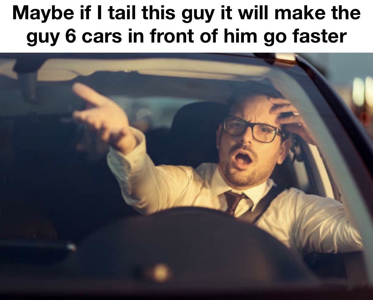 maybe if i tail this guy it will make the guy 6 cars in front of him go faster.