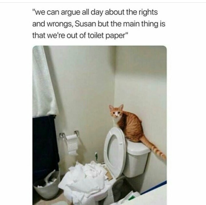 we can argue all day about the rights and wrongs, susan but the main thing is that we're out of toilet paper.