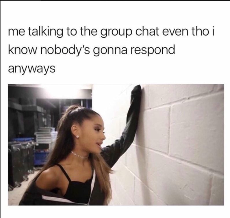 me talking to the group chat even tho i know nobody’s gonna respond anyways.
