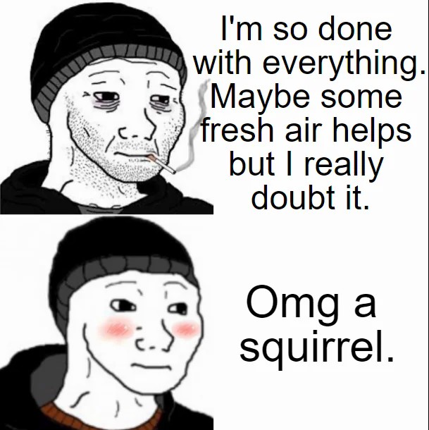 i'm so done with everything. maybe some fresh air helps but i really doubt it. / omg a squirrel.