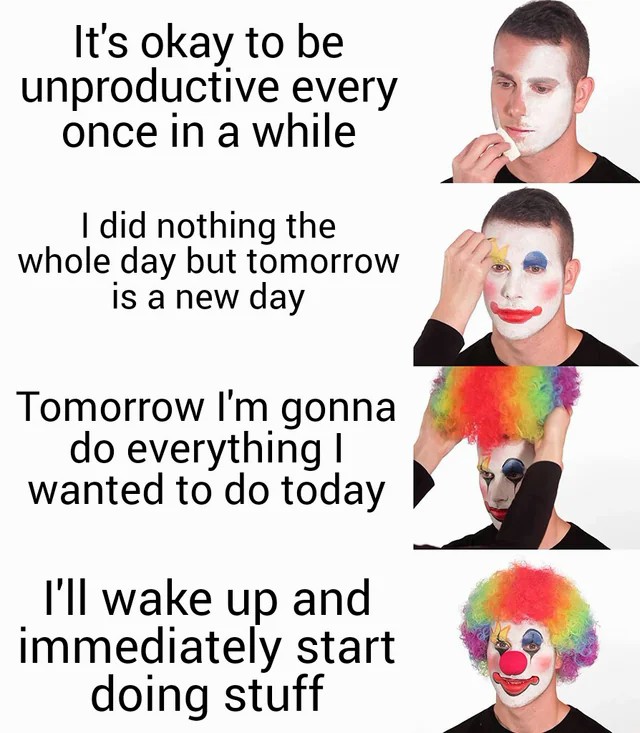 it's okay to be unproductive every once in a while / i did nothing the whole day but tomorrow is a new day / tomorrow i'm gonna do everything i wanted to do today / i'll wake up and immediately start doing stuff
