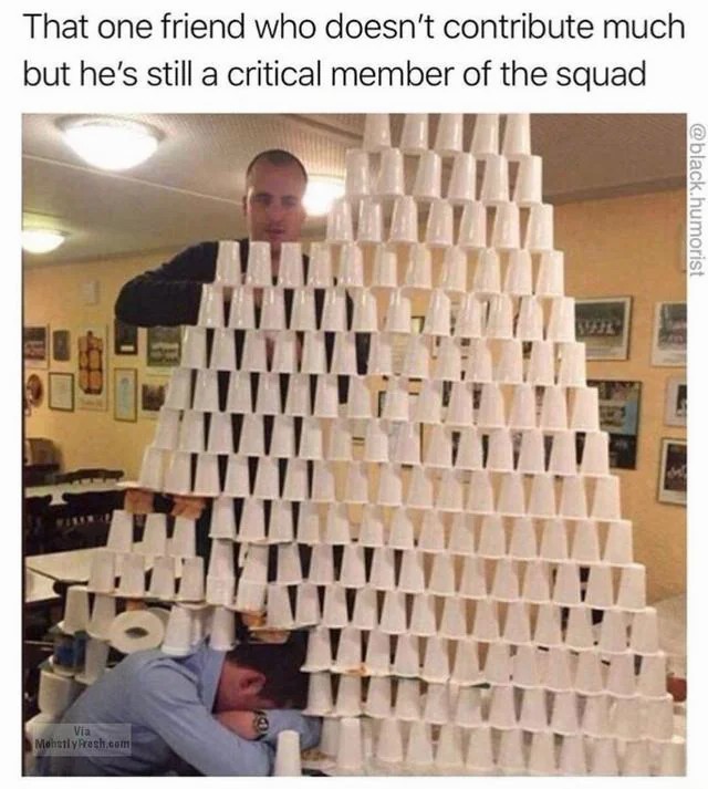 that one friend who doesn't contribute much but he's still a critical member of the squad