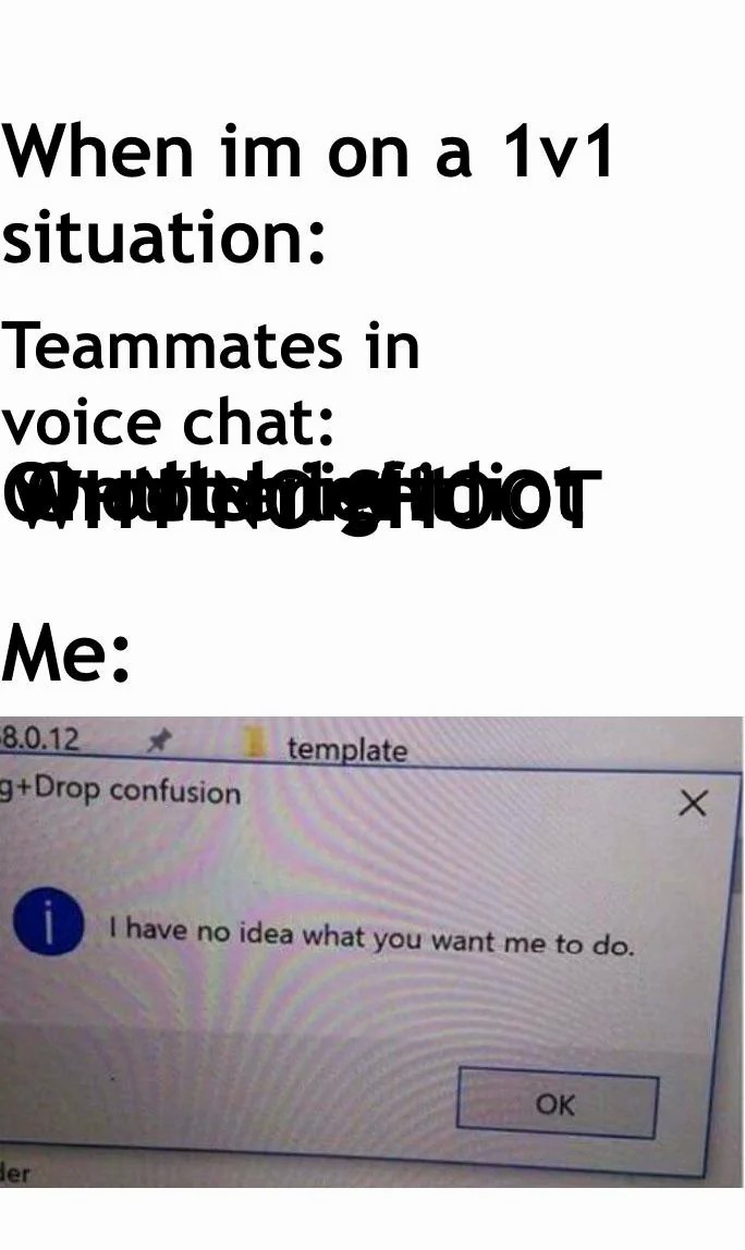 when im on a 1v1 situation / teammates in voice chat / i have no idea what you want me to do.