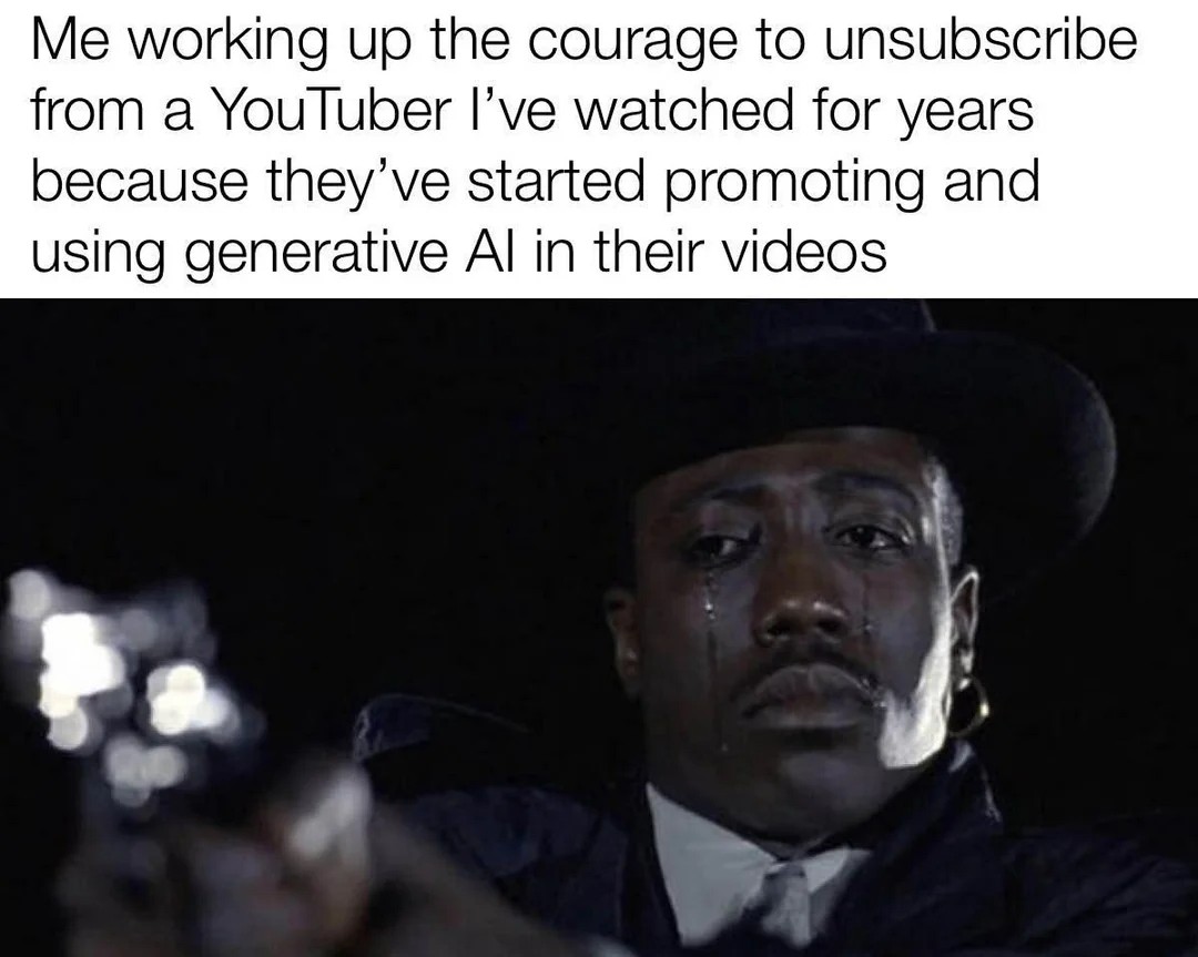 Me working up the courage to unsubscribe from a youtuber i've watched for years because they've started promoting and using generative ai in their videos