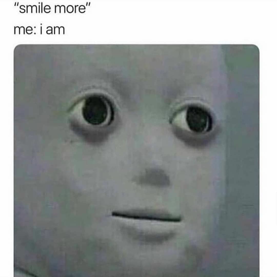"smile more" / me: i am