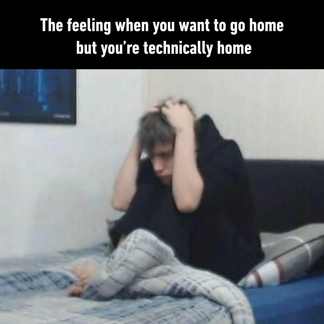 The feeling when you want to go home / but you're technically home