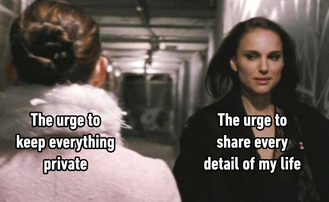 The urge to keep everything private / the urge to share every detail of my life