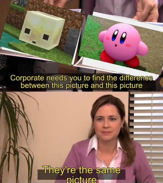 Corporate needs you to find the difference between this picture and this picture / They're the same picture