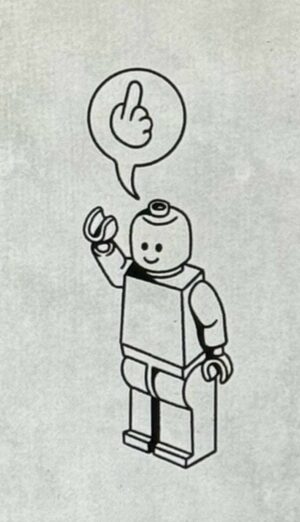 A Lego minifigure giving the middle finger.
